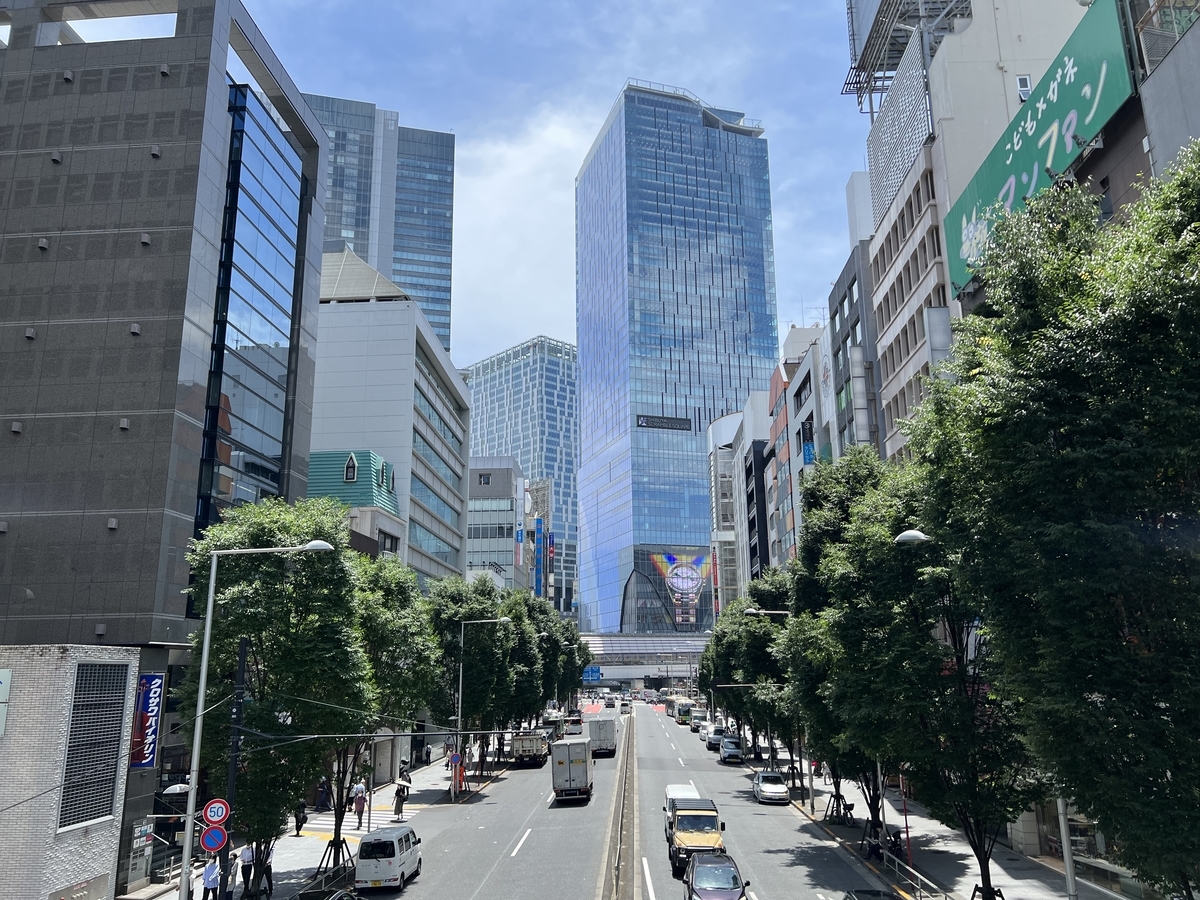 あのビルの下には、JR、東急、地下鉄など、たくさんの公共交通が集まっている。