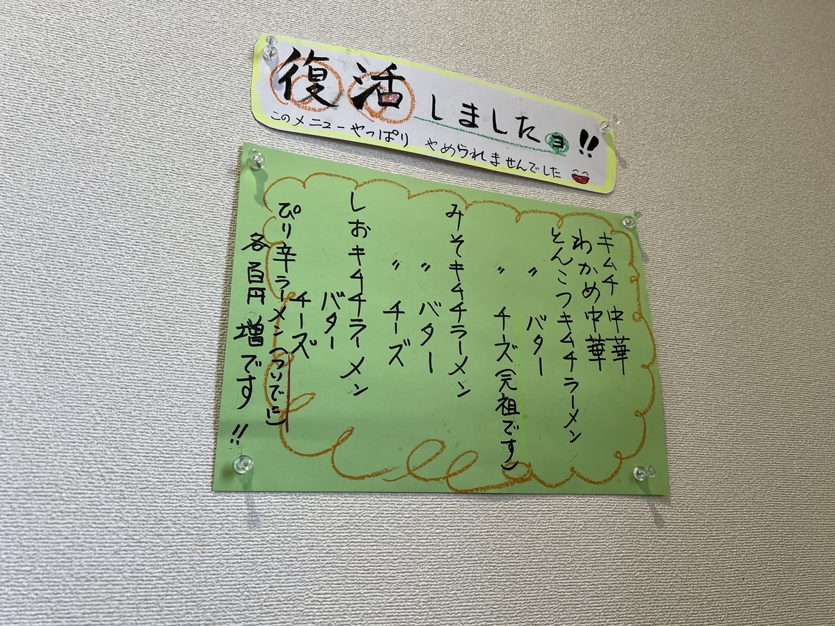 急に子供が書いたようなメニュー。(失礼すぎる)