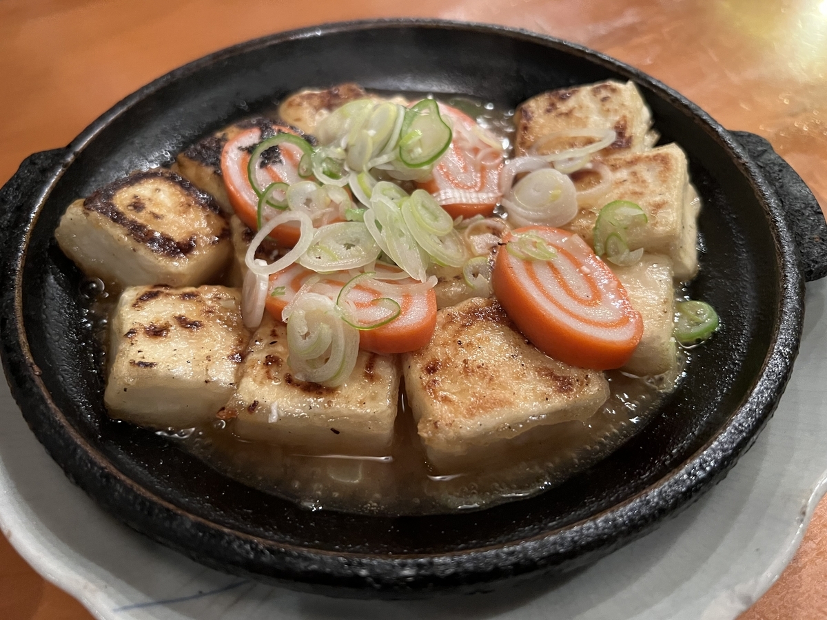 私が食べてきたお店はだいたい鉄板の上で豆腐を焼き醤油をまき散らす。