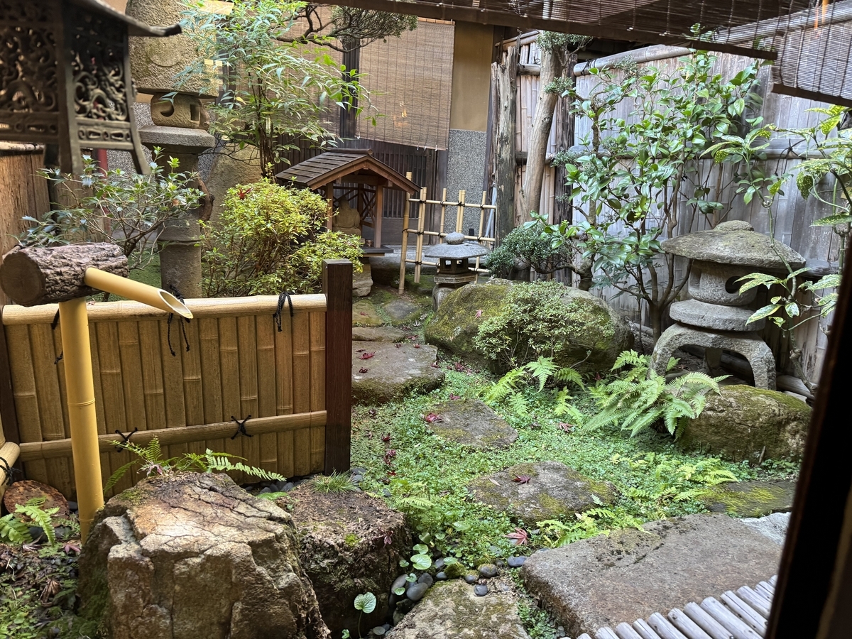 美しいコンパクトな中庭を眺めながらの食事ができます。