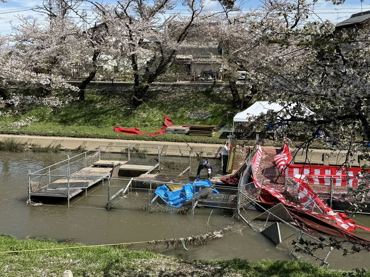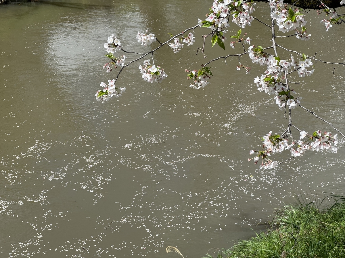 濁った川に花筏が浮かぶ。