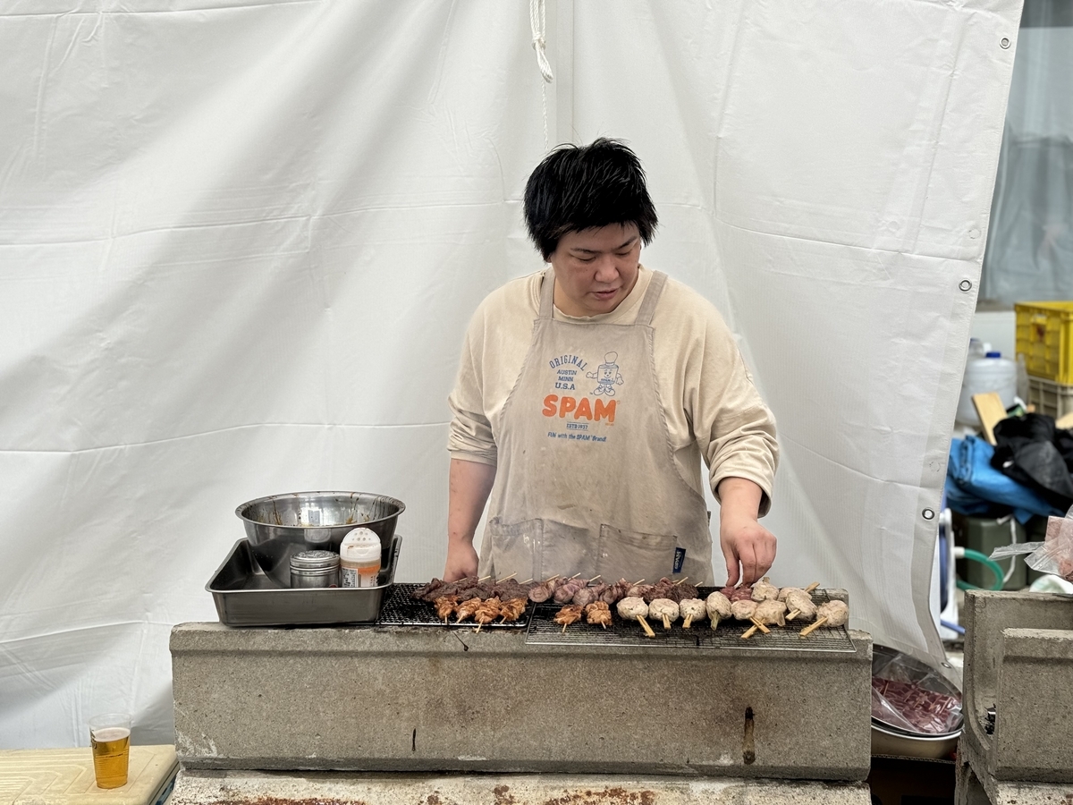 ななさんは最初から売り切れるまでひたすら焼き台の前に立ち続ける。